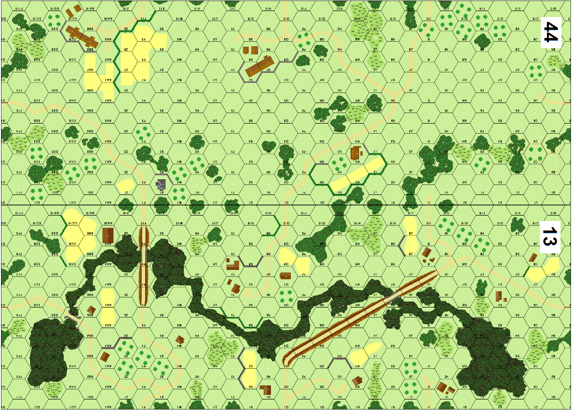 | Misc Rules: | Soft ground, cost of off-road AFV movement doubled. Stream is Marsh. |