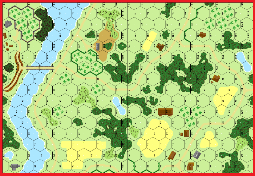 | Misc Rules: | PTO (G.1), LJ (G2.1) Exc: Roads/Bridge exist, Brush: Brush. A: AE (H1.22), D: Lax (A11.8) |
