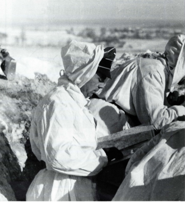 Das Reich artillery spotters in winter camo