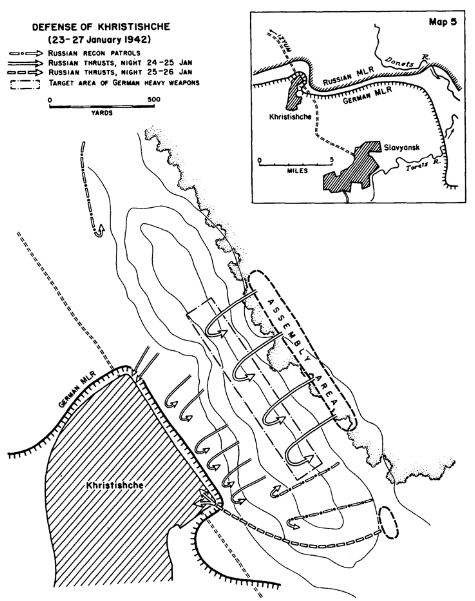 "Between the Hammer and the Anvil II" - Benefitting from the winter, Marshal Timoschenko decided to launch a significant offensive against the German Army Group South. The Russians managed to create significant openings aimed at reaching the Donetz basin from Izyum. The Russians made every attempt to take Khristishche but all were pushed back. It was only at dawn on the 25th of January that a patrol succeeded in penetrating the city.Attacker: German (196th Infantry Regiment, 68th Infantry Division)