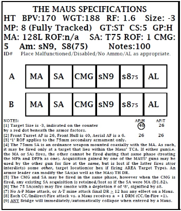 | AFVs: D:9 PzKpfw 38(t) E JgdPz VI StuPz IV PzKpfw VIB PzKpfw VG JgdPz V PzJg III/IV PzKpfw VIII Maus x 2 |