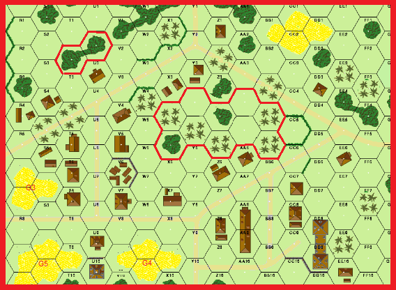 | Misc Rules: | PTO (G.1) Exc: Unpaved roads exist. D: Infantry may set up Concealed in ANY terrain. FB (B23.9) |