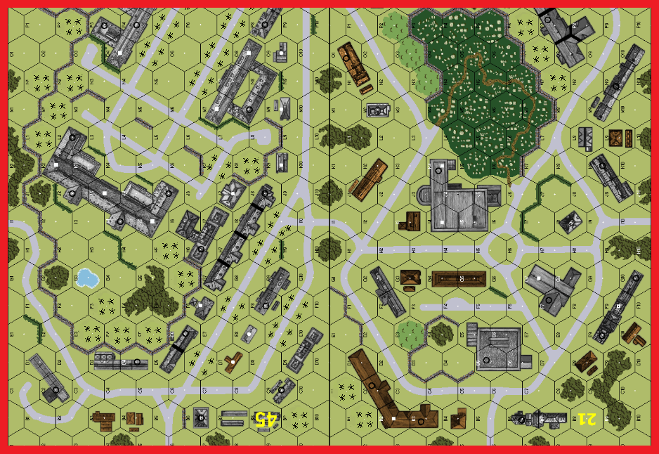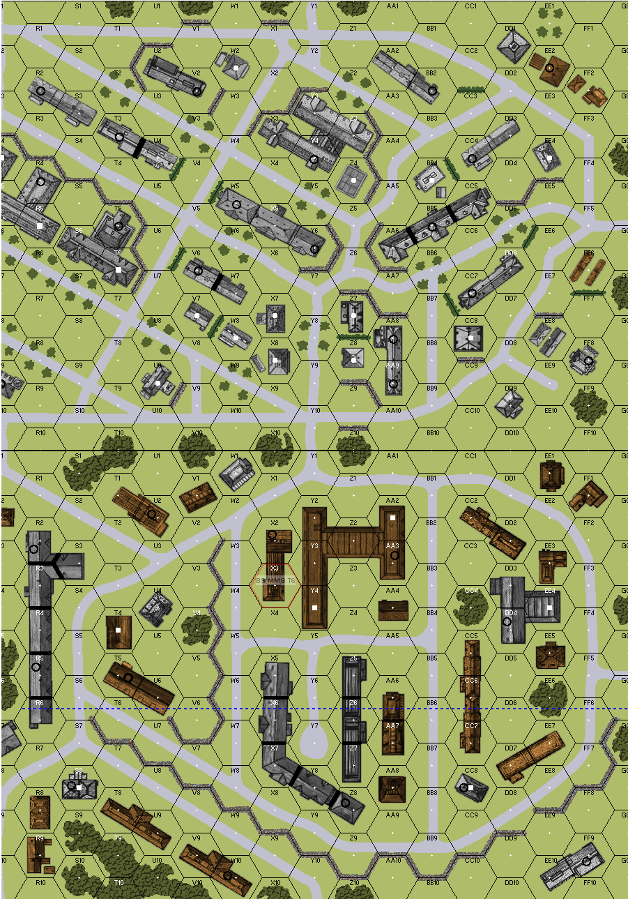 "The Lions of Belfort" -- - -The offensive launched on 14th November by General De Lattre towards Belfort completely surprised the Germans, and by the 18th, the troops of General Bethouart’s 1st Corps had reached their initial goals. The lead elements were a cadre of different Commando groups, called the Gambiez Group. These elite troops approached Belfort from the north and while engineers tried to open a passage for the tanks, the Commandos continued to harass the defenders holed up in their fortifications. After an hour’s delay, The Commandos d’Afrique silently stormed the enemy positions, surprising some Germans in their sleep. In an act of daring, the company of Capt. Metivier entered the suburb of Cravanche and even pushed a squad into Belfort proper, but this was forced to retreat after causing much damage to the Germans. The garrison, now alert, reacted to the incursion. At 1100, supported by a few self-propelled guns, a German battalion assaulted the Metivier company, now hastily entrenched in Cravanche. The Commandos could barely stand up to the Germans because of their superior firepower. When, about 1500 they seemed obliged to surrender, help arrived in the form of tanks from the Chasseurs d’Afrique and the men of the Shock Battalion. - - - -Victory Conditions: The German player wins if they control > 1 multi-hex building on Board 45 and have caused more CVP than suffered.Attacker: German (Reinforced 189th Infantry Division)