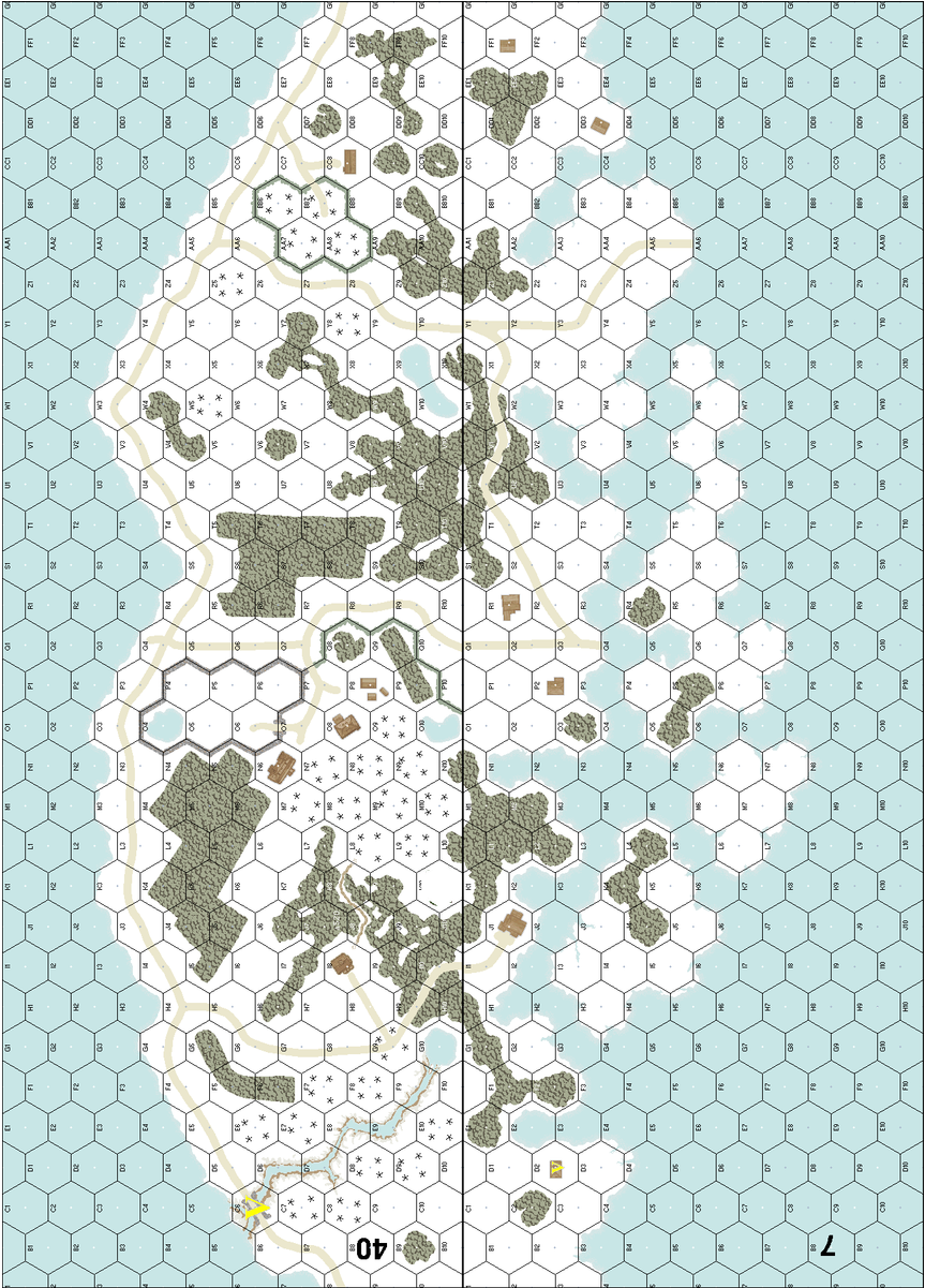 | Misc Rules: | GS (E3.72), treat Brush and Grain as Woods, no hills, Bldgs: Wooden |