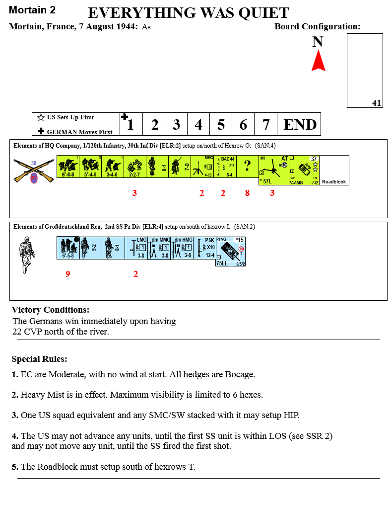 | Misc Rules: | Hedges are Bocage, Heavy Mist |