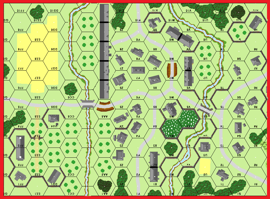 | Misc Rules: | No hills, Treat Hedges as Walls. A: OB is 6 Heroes w 3 bazooka, 3 DC, FT |