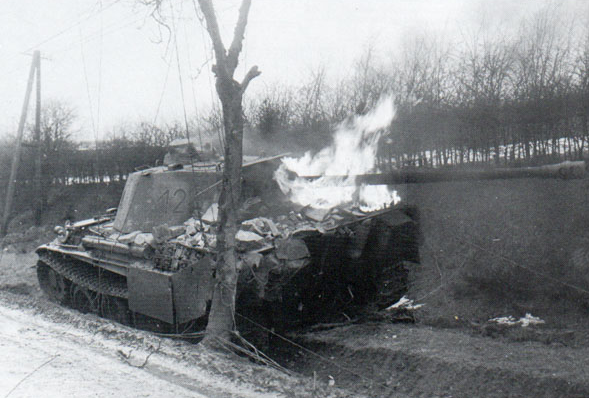 This German Panther was disabled NE of the 30th zone during the Battle of the Bulge. But it was part of the 1st SS-Panzerkorps and ended its journey south of Krinkelt during the battle for the Twin Villages.