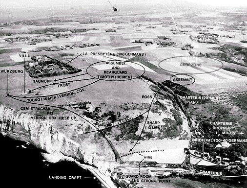 At Bruneval, north of Le Havre, the Germans had installed an example of the Wurzburg radar system for air defense. British paratroopers were to drop into France, steal as much of the equipment as possible and bring it back to England. Flight Sergeant C.W.H. Cox, a R.A.F. radar expert, was detailed to accompany the mission.Attacker: British (C Company, 2nd Parachute Regiment)