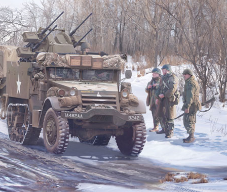 In the pre-dawn hours of December 17, a battery of 105mm howitzers of the 107th Field Artillery Battalion just behind the southern reaches of Skyline Drive came under small arms fire from German patrols. In the early afternoon of the 18th, an entire battalion of Volksgrenadiers attacked that same battery and a nearby battery of 155mm howitzers of the 108th Field Artillery Battalion. Whilst the batteries provided mutual fire-support, two halftracks of the 447th Anti-Aircraft Artillery Battalion raced up Skyline Drive, their quad 50's blazing. . .Attacker: German (Volksgrenadier Regiment 914)