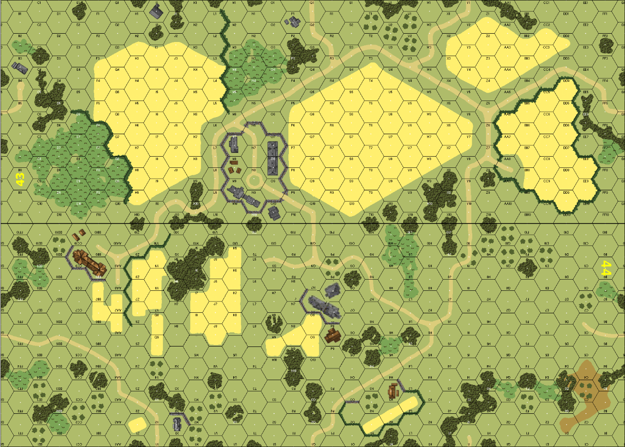 After intense artillery and rocket preparation, the Russian Offensive commenced in the early morning. Troops pushed forward behind rolling barrages and supported by armour. the objective was to break through along the key Smolensk-Minsk highway. The German frontline, on this unusually strong held section of the front, put up a fierce resistance. Later that day, three Soviet Rifle Divisions fought their way through a gap between the German Divisions and the floodgates opened. 7/24/25: Posted with permission from Andrew Rogers. Campaign Instructions and Scenario added to User Files.Attacker: Russian (11th Guards Army)