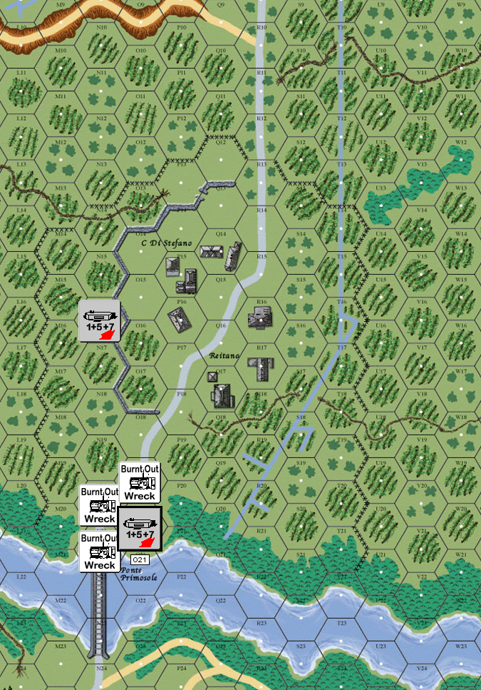 After a disasterous landing, Alastair Pearson's 1st Airborne Battalion of the 1st Airborne Division had seized the Primosole Bridge early on July 14th. The Italian garrison manning te bridge was driven off after a brief fight, and the morning passed without incident at the bridge although the sound of fighting could be heard to the south. Since the landing, Fran Stangenberg had been busy in Catania assembling an ad hoc German force to retake the bridge. He gathered 200 rear-echelon troops and began the first assault down Highway 14 at noon, which was beaten back by the British with little difficulty. As the day wore on, however, the pressure on the British bridgehead increased. Captain Stangenberg had split his ad hoc group into two forces. As the day wore on, the German attack began to push in on the bridgehead from the north and east while British ammunition began to run low. . .Attacker: German (Kampfgruppe Schmalz, Hermann Göring Division)