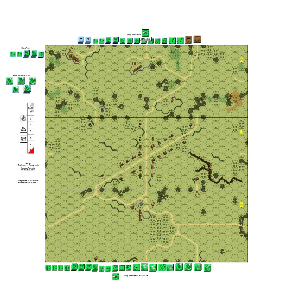 The hatred between the Hungarians and Romanians festered as they both waited to fight for Transylvania. The Allies began operation into Transylvania in late September. The battles went back and forth, diminishing the Romanian armored strength. They combined the Niculescu and Matei armored grouping into one large force. They were equipped primarily with TACAM R-2s, T-4s, StuGs and Resita 75mm AT guns. The unit also contained armored cars, SPWs, assault engineers, a 150mm artillery battery and an AA battery. It was truly a combined arms mechanized force. The Romanians were ready on 9 October and attacked, with the armored group providing the punch for VI Corps.Attacker: Romanian (Elements of Armored Group "Niculescu/Matei")