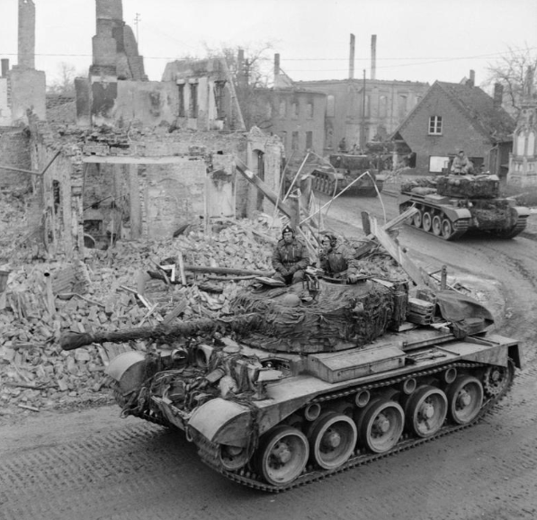 British Comet tanks of 11th Armoured Division in a devastated German town - 30th March 1945.