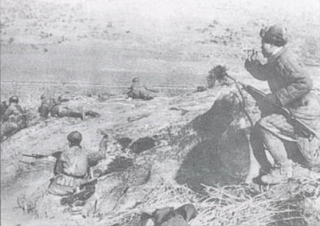 Within 48 hours of the end of the Pacific war, elements of the USMC III Amphibious Corps were ordered into north China to facilitate the surrender and repatriation of Japanese forces near Peiping. On arrival, the Marines found former Japanese puppet forces in localized combat with Chinese Communist bands. The Marine commander ordered the puppet forces withdrawn and replaced with Marines. The local Chinese Communist leader, Chou En-Lai, disclaimed any designs on the area without American cooperation, but warned that if the US forces were seen as favoring the Nationalist Chinese, the results could be violent. On 5 October, reconnaissance vehicles proceeding from Tientsin to Pieping found 36 roadblocks scattered along the route, blocking all vehicles larger than a Jeep. On the following day, a detail of engineers guarded by a platoon of Marines was sent to clear the road. As the Marine engineers and security platoon drove up to a roadblock about 22 miles from Tientsin, they were fired upon by an estimate 40-50 Red Chinese Communists believed to be part of the 8th Route Army.Attacker: American (USMC) (Engineer Detail and Security Platoon, 1st Marine Division)