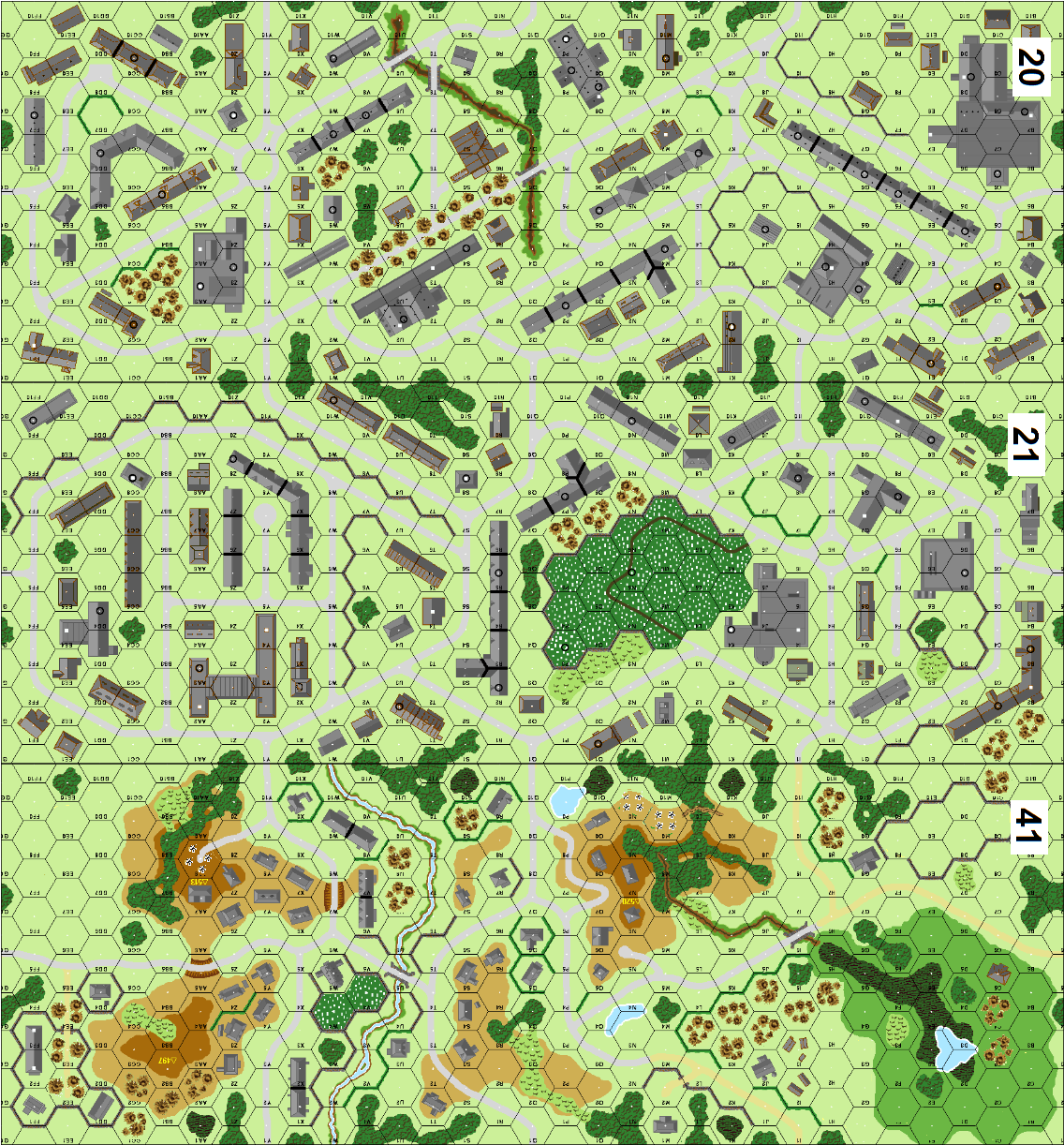 | Misc Rules: | Buildings are Stone, ground level only. Orchards are Shellholes. CI in effect. A: -2 DRM in CC |