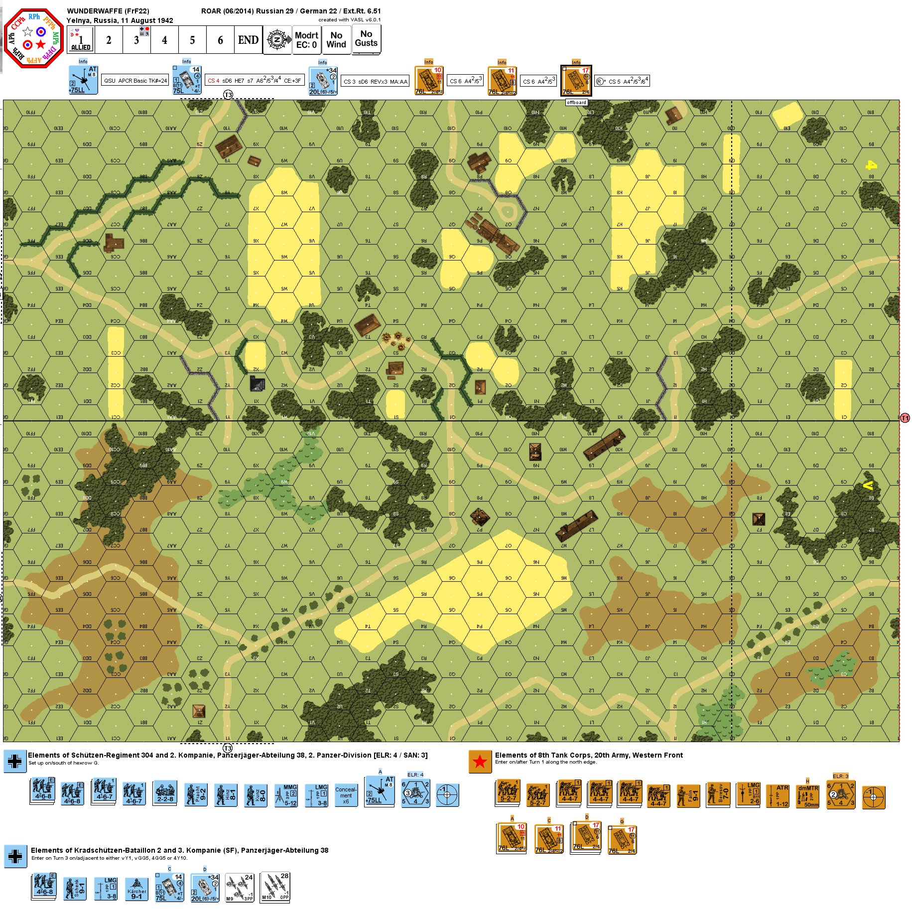 Defender: German (Schutzen-Regiment 304 and 2. Kompanie, Panzerjager-Abteilung 38, 2. Panzer Division; Kradschutzen-Bataillon 2 and 3. Kompanie (SF), Panzerjager-Abteilung 38)