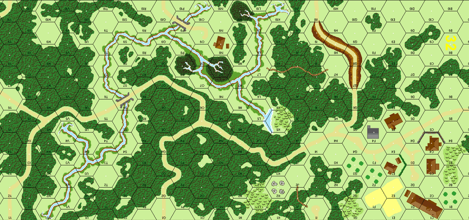 | Misc Rules: | EC Dry, Gusty. 3 Woods Blazes placed by Russian player, will not spread. D: Green 4-4-7s |