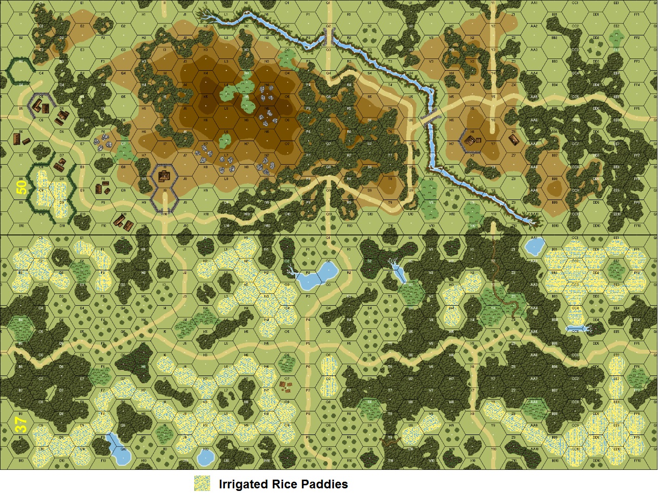| Misc Rules: | KW Terrain (Grain is irrigated paddies). D: 9-1 leader begins Wounded |