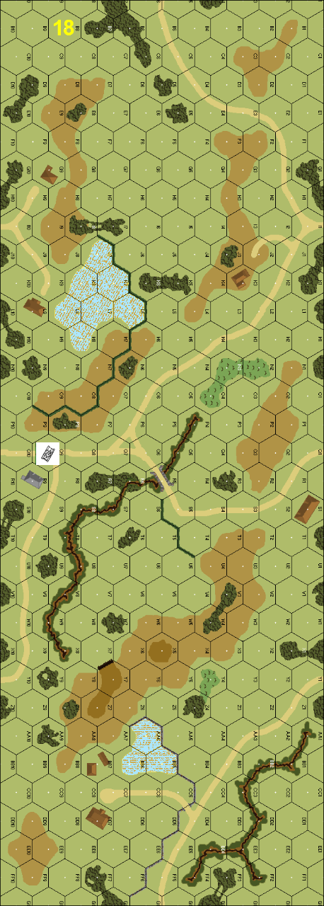 | Misc Rules: | KW Terrain. Scrounged M4A3E8 wreck in Q9. D: .50 cal set up in Q9, may not move |