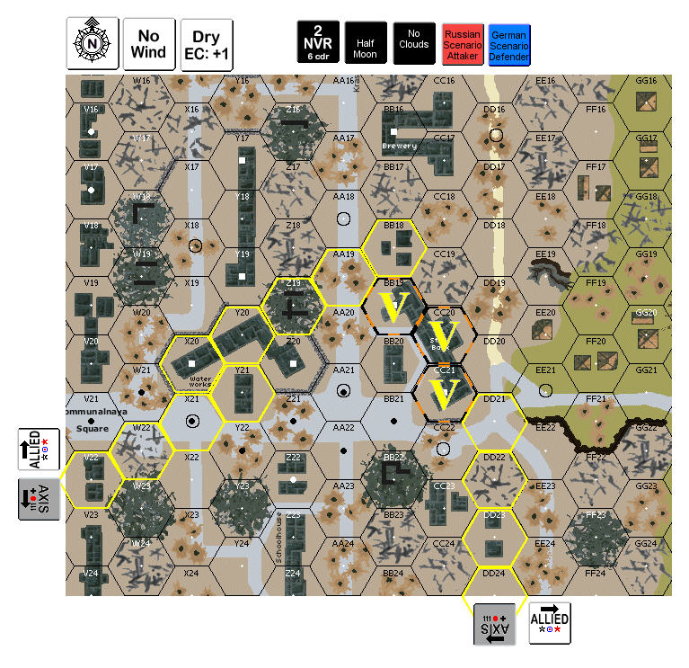 The German 3rd Battalion, Infanterie Regiment 194 fought through Stalingrad’s suburbs, the Main Railway Station, Red Square, and finally to within sight of the Volga. Their rapid advance across the cratered landscape and the fierce resistance the neighboring battalions ran into, left them isolated. Captain Münch ordered his last able-bodied fifteen fighters into a U-shaped house and neighboring buildings. On the top floor he could see the ferry landings, the umbilical cords of Soviet resistance. Sensing the inevitable counterattack, Münch set his men to work gathering every piece of wood and stone to fortify the buildings.Attacker: Russian (NKVD)/Russian (42nd Guards Regiment, 13th Guards Rifle Division / 10th NKVD Division)