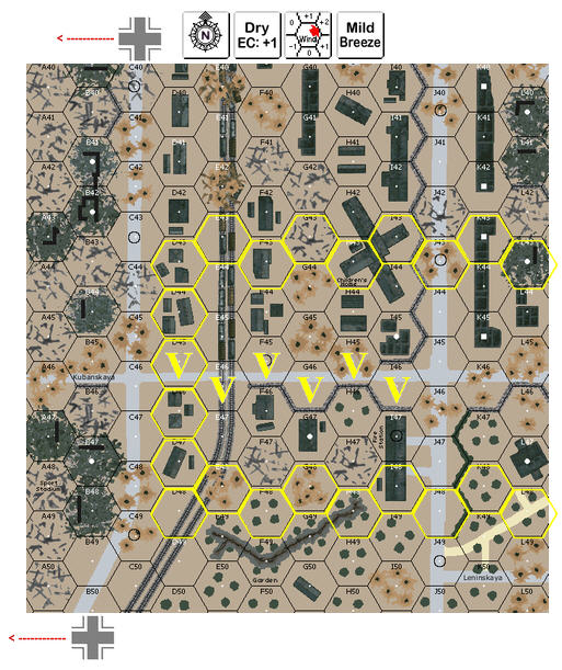 | Misc Rules: | +1 LV Turn 4 to end. D: MOL, HIP 2 sqds, T-34 Immobile at start. |