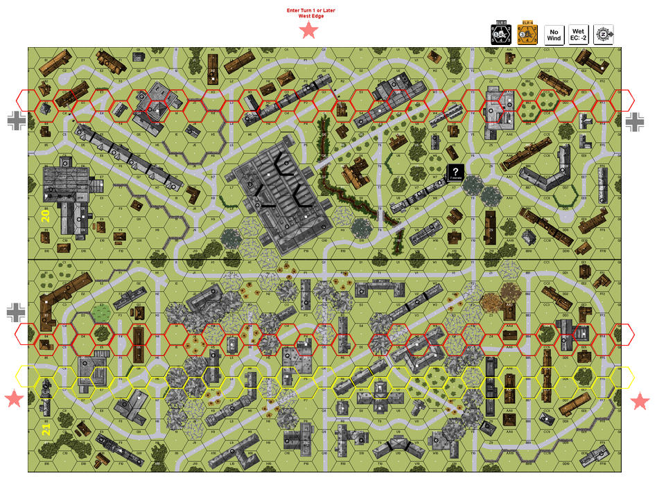 | Misc Rules: | Rubble is Rout/Rally/Ambush Terrain. RT (B23.8), HtH (J2.31), NQ (A20.3). D: Sewer (B8), FB (B23.9). |