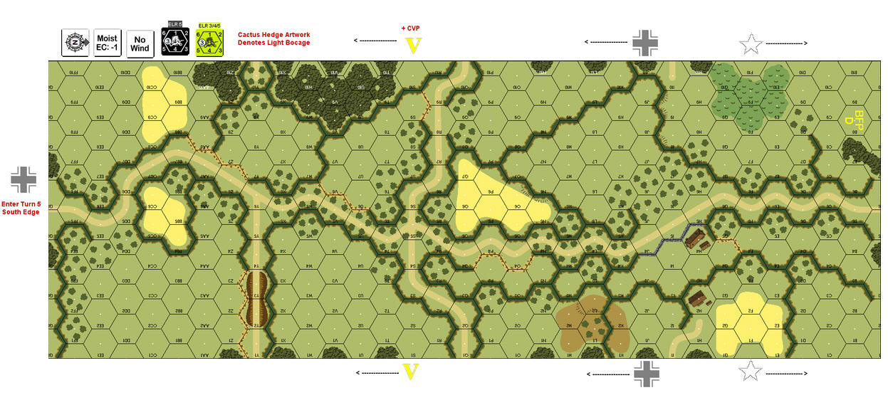 | Misc Rules: | Minimum vehicular road rate is 1 MP per hex. A: AFV set up in Motion, 4 secret Gyros |
