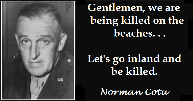 While other officers were concerned with moving inland and taking objectives, General Cota could see by noon that the key problem was the Vierville draw. Or rather, that nothing was coming up the Vierville draw. Leaving others to fight the Germans west of Vierville, Cota went to see the beach exit for himself. The destroyer McCook was just 1,000 yards offshore, firing at the concrete emplacements and houses around the church. Cota’s group of officers took advantage of the stunning effect of the naval fire. They hastened the collapse of the German positions with well-aimed pistol and carbine fire.Attacker: American (Gen. Cota and staff 29 ID)