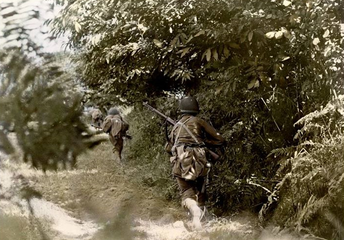 The 1st Battalion, 116th Infantry Regiment, 29th Infantry Division struggled across the Elle River and having to fight through many fields surrounded by the boucage. Orders have come down to take the village of Covains which is defended by elements of the German 352 Infantry Division. The US soldiers face one more difficult field, with one more hedgerow, to clear the way towards St. Lo.Attacker: American (1st Battalion, 116th Regiment, 29th Infantry Division)