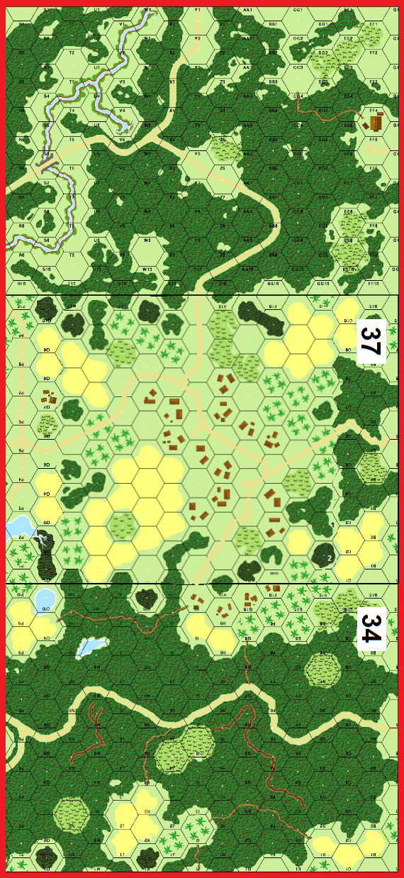 My internal sound track was CCR's "Run Through the Jungle" and my attack hit Tom's BIA hard in the center and on his left but, some stout MC's and well timed Dare-Death squads slowed my advance early. The reinforcements showed up and there was just to much BIA green on the board to overcome in the time given. In our ongoing B&J play through we don't play balance and neither of us think the balance is going to really help the British that much. but like I said don't let that stop you it's still fun and good PTO training. I would enjoy seeing BFP relook this scenario in a future re-release.