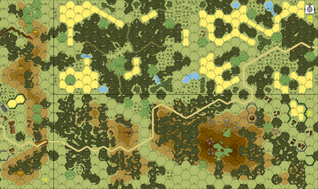 | Misc Rules: | PTO (G.1) Exc: 1 road exists. Stream: Open Ground. D: May setup in foxholes |