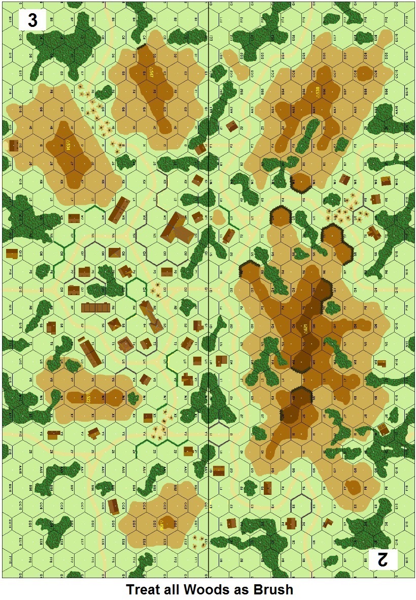 | Misc Rules: | Woods: Brush, Bldgs: Wooden. A: Commandos (H1.24), AS (A19.131), Air (E7) |
