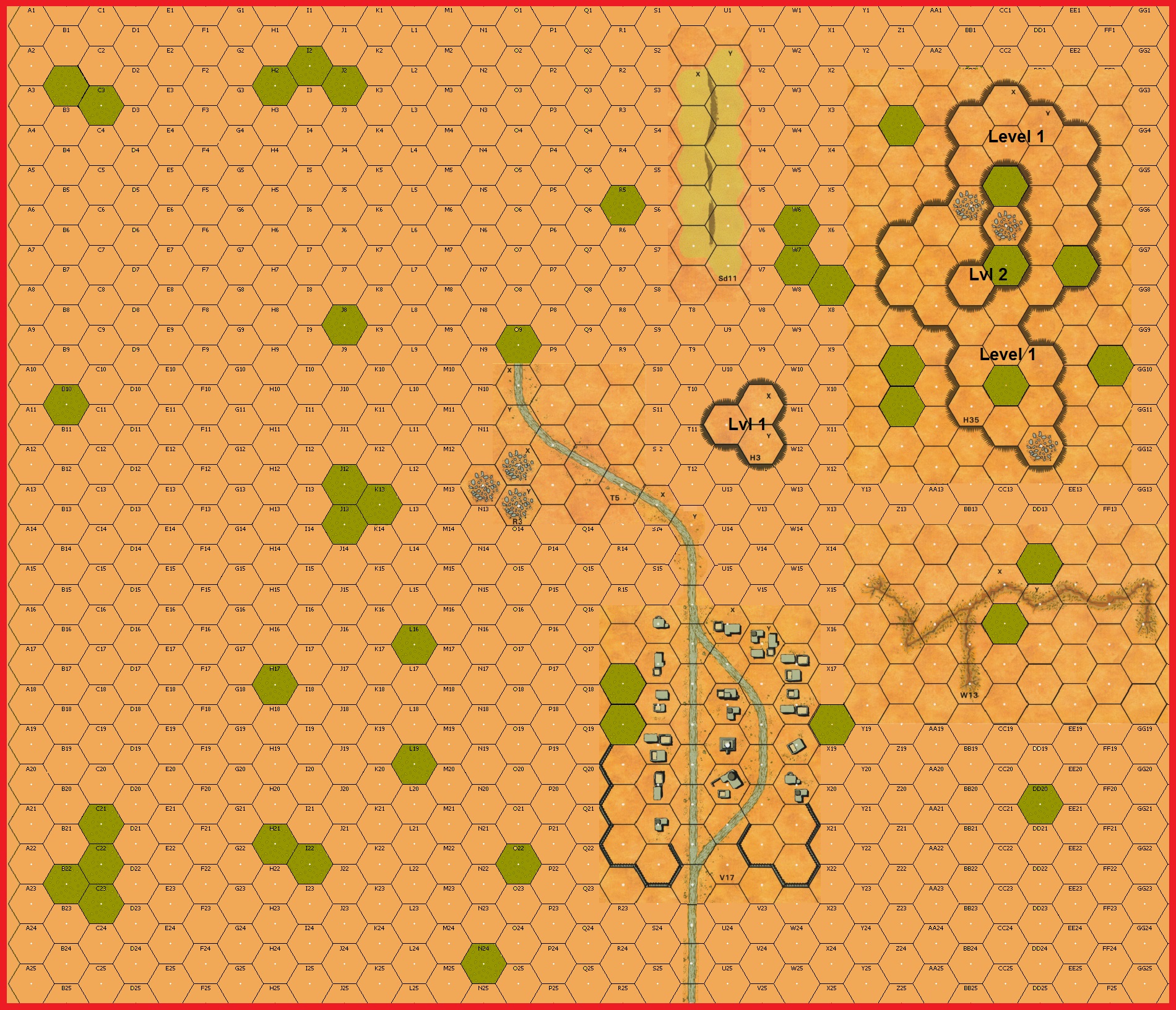 | Misc Rules: | Hillock overlays treats as Hills, Level 1 and 2. Treat Scrub as Inherent Woods. |