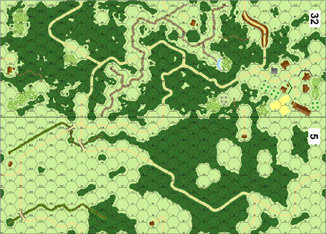 | Misc Rules: | Pine Woods (B13.8), No bridges, stream is Dry. Treat Marsh as Woods. |