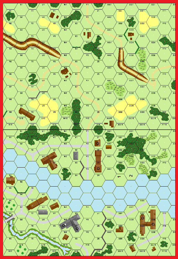 | All Fortifications must be set up on board revealed prior to German set up. Pillboxes cannot be set up on board in hexes numbered >3. | Fanatic website |