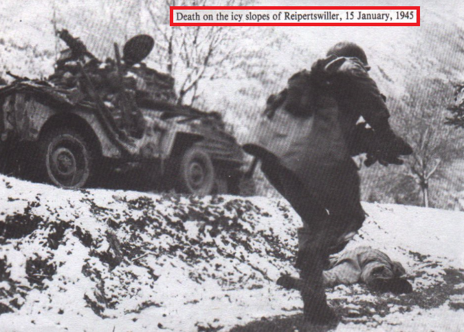 On the morning of January 15th, the men of 3rd Battalion, 157th Regiment were ordered to move forward and take two hills north of the town of Reipertswiller. After moving forward, heavy fire suddenly hit them from three directions. The Thunderbirds managed to hold their positions on the hill. With the arrival of SS mountain troops, the pressure on 3rd Battalion increased. On the 16th, the Thunderbirds were continually hit with infantry assaults, rockets, mortars, and long-range tank fire. The Germans had orders to take the hills. The SS attacked both flanks, and through a valley in the American rear. Companies from the 1st and 2nd Battalions moved to reinforce the hilltops.Attacker: German (SS) (Regiment 11, SS Mountain Division 6 "Nord")