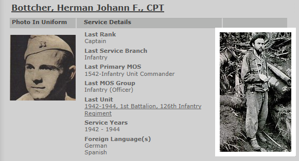 Elements of Yasuda & Tsukioka Butai attack elements of the American 2nd Battalion, 126th Infantry, 32nd Division led by a stubborn 10-2 leader, Herman Bottcher. Following the December 5, 1942 assault by American troops, Bottcher volunteered to lead a group to drive a wedge into the Japanese flank towards the beach at Buna. With a dozen men, he crawled through a swamp. After hours of combat using their Thompson submachine guns and throwing grenades, the group made it to the beach and dug in. On the beach, they claimed to have killed 40 Japanese and wounded a dozen more. They fought off attacks for seven days, dragging back abandoned enemy machine guns to use. Before being relieved, his party claimed to have killed a total of 120 Japanese. The rest of the 32nd Division was able to advance to the beach, putting a wedge between the defending Japanese forces. Wounded twice in the battle, his first wound put an arm in a sling. His second wound saw him relieved from combat. General Eichelburger crawled out to his position to congratulate him and awarded him the Distinguished Service Cross (DFC) and a field promotion to Captain.Attacker: American (2nd Battalion, 126th Infantry, 32nd Division)