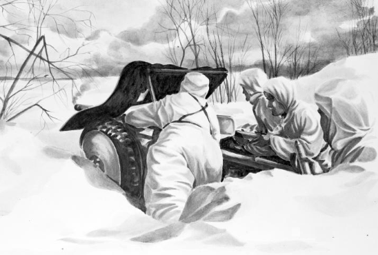 For almost a year, German and Soviet forces faced off near the Arctic Circle along a static front. Both sides engaged in probes. In one probe, white clad Russian infantry crawled forward during the long arctic night, manhandling an anti-tank gun into close proximity of the German lines, using a white sheet held aloft as camouflage. When morning arrived, the sheet was lowered and the hastily dug in gun signaled the start of the attack by pounding a bunker, blowing a hole in the roof. The well-trained and armed SS mountain troops rushed to their defensive positions when the shooting started. With their attention focused on the gun, the defenders were surprised when enemy infantry had managed to infiltrate to within a few meters of their defensive works.Attacker: Russian (Elements of the Soviet 14th Army)