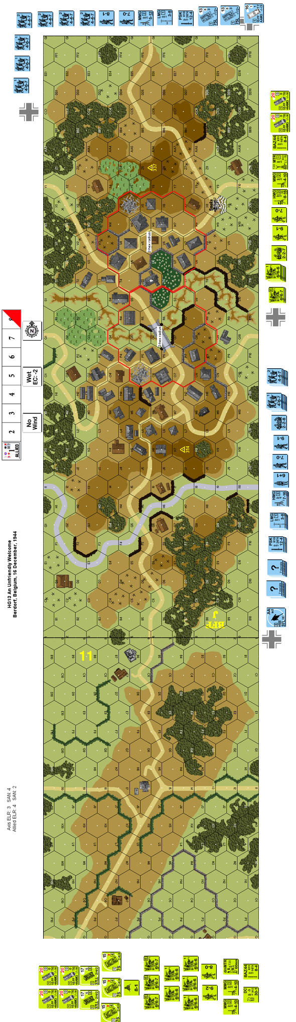 | Setup notes overrule A2.3 for German setup for this scenario allowing Germans units to setup on the row A half hexes. | BFP |