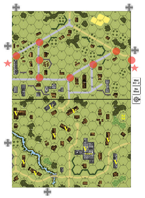 Defender: German (I. Bataillon, Infanterie-Regiment 58, 2. Kompanie, Panzerjäger-Abteilung 621, Sturmgeschütz-Abteilung 667 and I. Bataillon, Infanterie-Regiment 18)