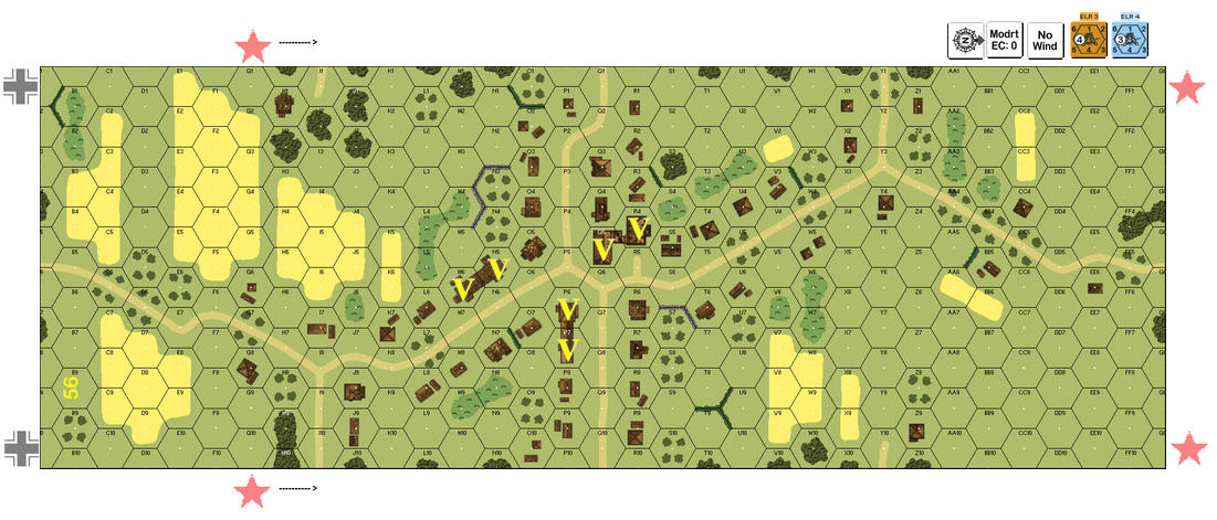 | Misc Rules: | Wooden Buildings, ground level only. D: T-70 is Dug-in AFV (D9.54) |