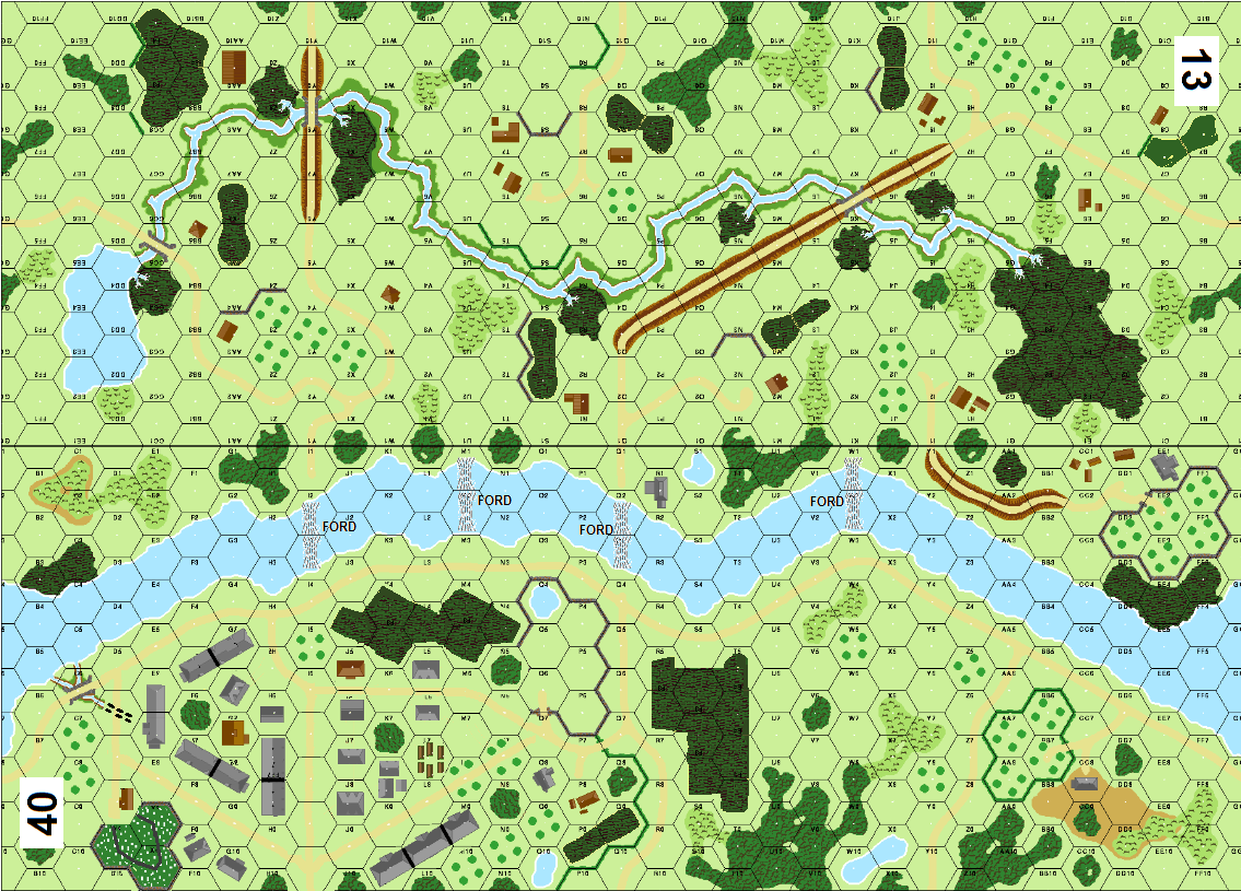 | Misc Rules: | Grain: Marsh. +1 LV (E3.1) Turns 1-4. A: Rafts (E5.121), AE (H1.22) |