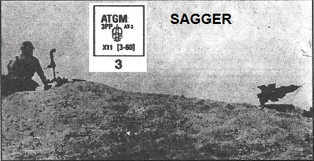 When the first assault wave of Egyptian soldiers scrambled up rope and bamboo ladders following their crossing of the Suez Canal, many of men were seen carrying unusual equipment. Some had tubes over their shoulders, carrying the new Rocket Propelled Grenade, RPG-7. Others were wearing a special load-carrying assault jerkin, itself considered a 'secret weapon' at the time and one that allowed three men to carry a Soviet 82mm mortar. Others had an even more sinister load, carried in canvas-covered cases, carried or strapped on their backs. The heretofore unknown suitcase contained a sophisticated new weapons system --a Russian wire-guided missile code-named "Sagger". The first wave of the assault was not tasked to capture Bar-Lev Line positions. Instead, they were to fan out into the desert for 10 miles, dig in, and await the inevitable Israeli armored counter-attack.Attacker: Israeli (Elements of the Fort Lahtzanit Garrison Local Armor Reaction Force)