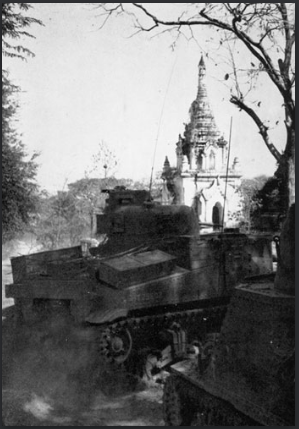 The Allied advance through the city of Mandalay continued with the sweep of the southern sections of the city. During the battles for Mandalay, the Allies took caution not to needlessly destroy or damage the many pagodas of the city. However, on one occasion, the Japanese decided to center their defense on a large pagoda. It was up to the Royal Berkshire Regiment to clear this obstacle. They had the assistance of armor for the assault.Attacker: British (Company B, Royal Berkshire Regiment and 256th Tank Brigade)