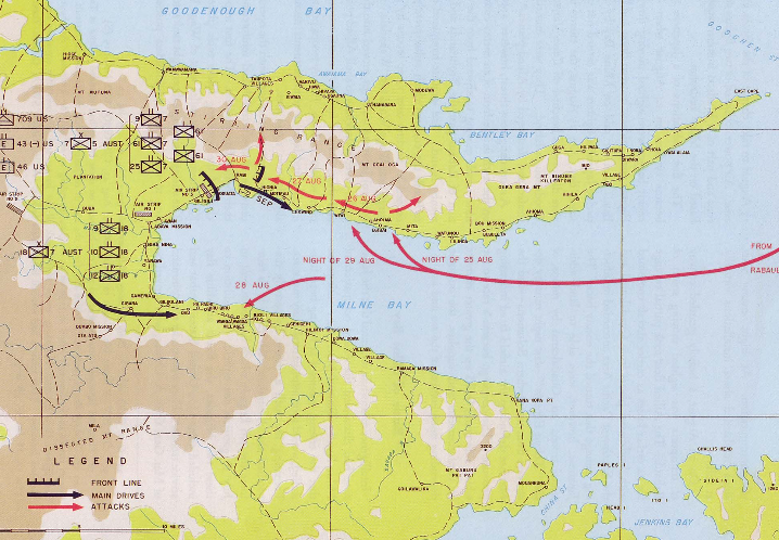 Believing that the Allies had only a few unsupported infantry companies at Milne Bay, Admiral Mikawa of the 8th Fleet ordered the Kure 5th and the Saseho 5th Special Naval Landing Forces to land east of the Australians at Milne Bay and attack westwards, taking the air base. The first echelon, Kure 5th SNLF, landed at 2200 hours on August 25 near Waga Waga, five to seven miles east of KB Mission, where a company of the Australian 61st Battalion was outposted. Leaving most of the unit to finish unloading, an advance party of Japanese sailors supported to two tanks began moving westwards to Milne Bay. At 0125 hours, the Australian citizen soldiers met the Japanese sailors. These militia troops, in action for the first time, were confronted with two Japanese medium tanks, with glaring headlights. Rifle fire rippled back and forth in a confused struggle in the darkness of the jungle as the Japanese tried again and again to penetrate the Australian lines. . .Attacker: Japanese (Kure 5th Special Naval Landing Force)