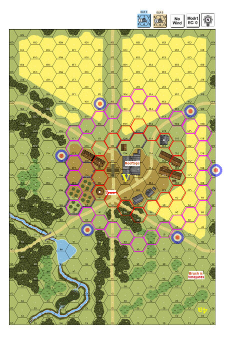| Misc Rules: | Treat Brush as Vineyards. Building 4aG11 has rooftop locations. A: H-t-H |
