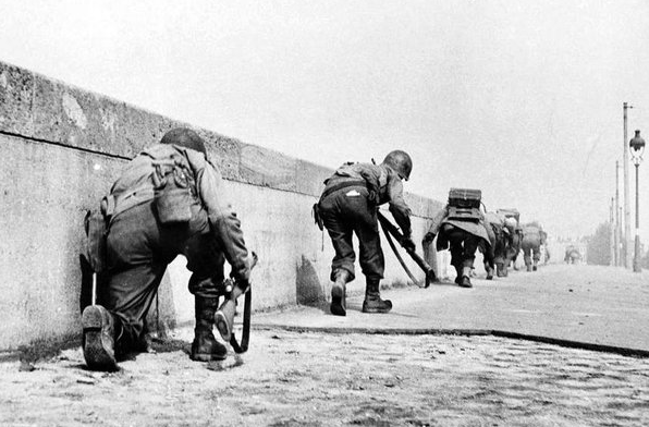 | Men of the 69th Infantry Division carefully cross a bridge under fire from a German sniper. Leipzig, 1945. (us inf leipzig bridge.png) | Image | hoxson1 | 1437 |