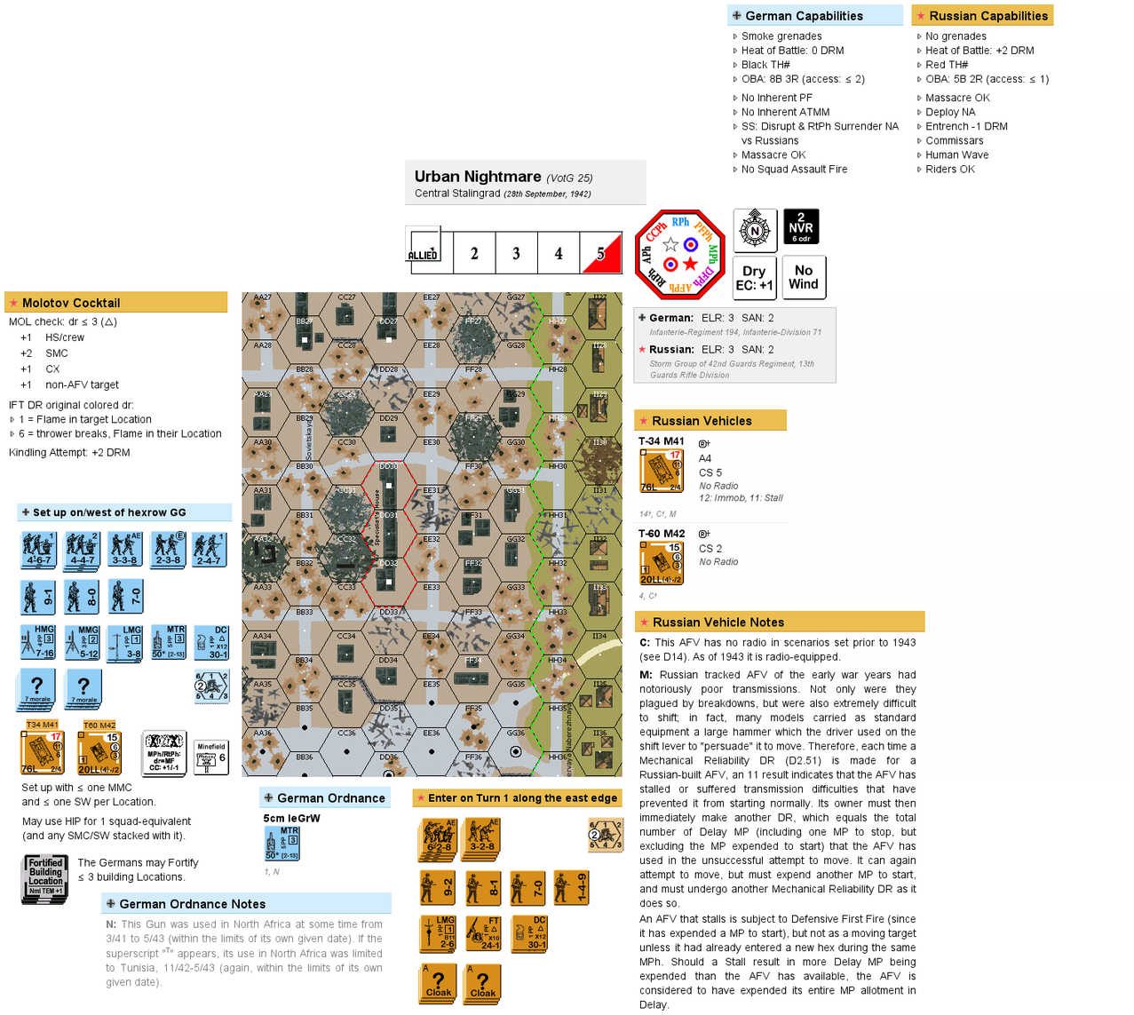 Misc Rules: VOTG SSR, Night rules. A: MOL w D: no captured use penalties on AFVs