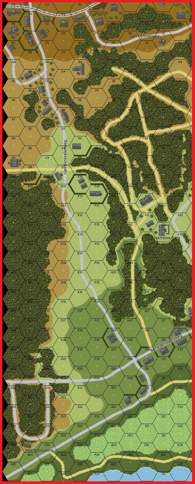 | Misc Rules: | A: random draw for 4th AFV; tanks my not fire FT into woods hexes |