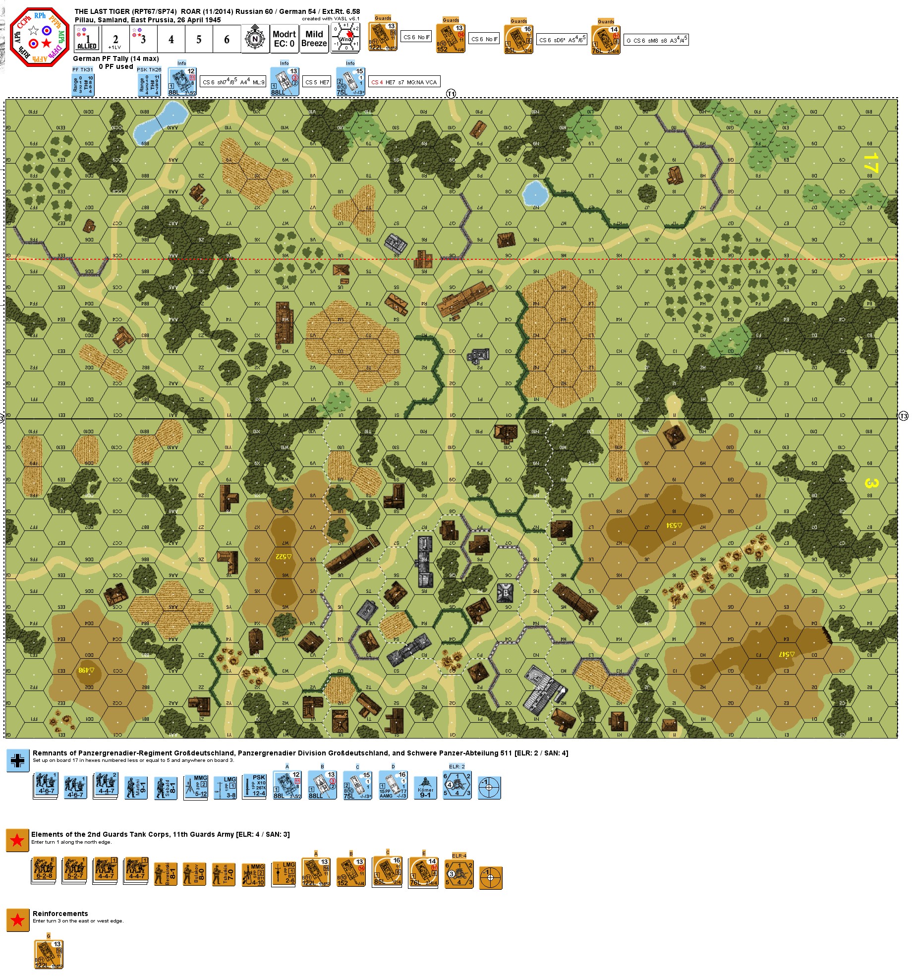 | Misc Rules: | +1 LV Hindrance thru end of Turn 2. Platoon Movement is NA. |